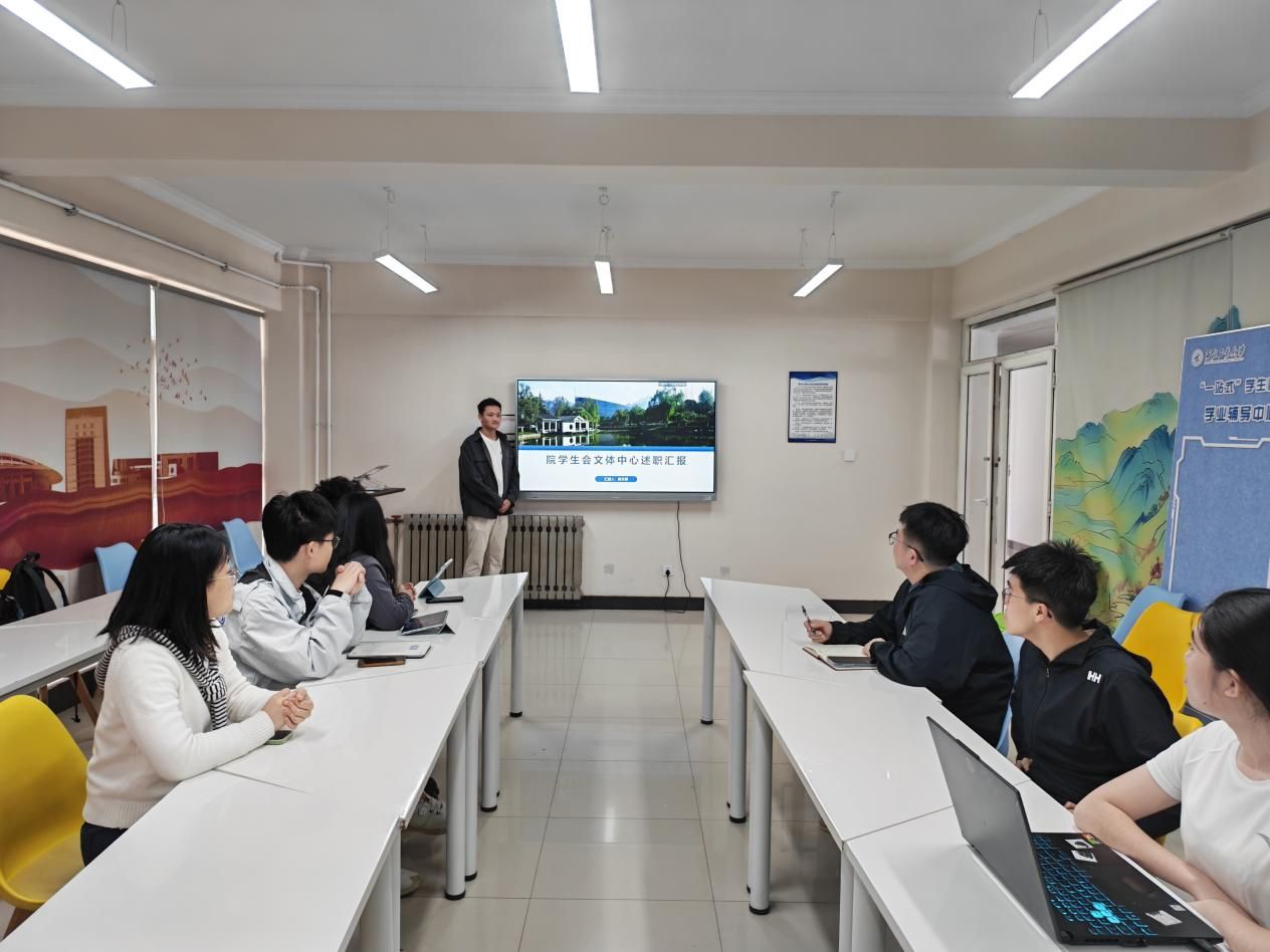 文体中心负责人通过活动影像回顾、数据梳理等方式,直观展示了工作成效,详细汇报了院级体育赛事、心理健康专题讲座、校园文化节等活动的策划与举办情况,丰富同学们的课余生活,助力学生全面发展、身心健康。