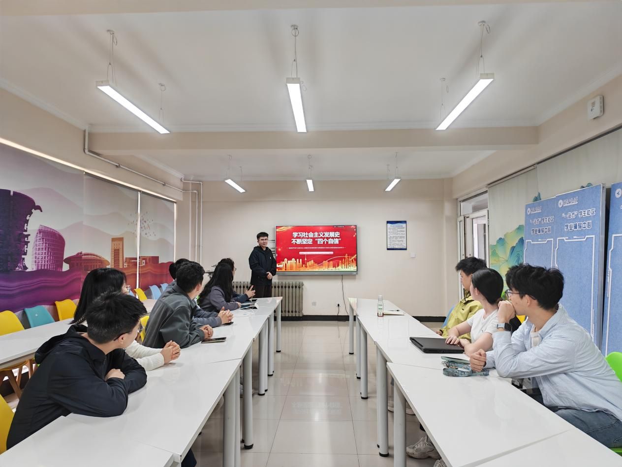 会议尾声,付强对学生会上半年的工作成效给予充分肯定,认为各部门履职尽责、协同发力,在服务同学、丰富校园文化、强化思想引领等方面取得了显著进步。同时,他就工作态度、工作效率提升等方面提出具体改进要求,希望全体成员正视不足、补齐短板,以更严谨的作风、更务实的行动做好后续工作。随后,付强带领全体参会成员开展《学习社会主义发展史,不断坚定“四个自信”》主题学习,引导大家从历史中汲取奋进力量,将理想信念融入服务同学、奉献校园的实践中,努力成长为有理想、敢担当、能吃苦、肯奋斗的新时代合格青年。