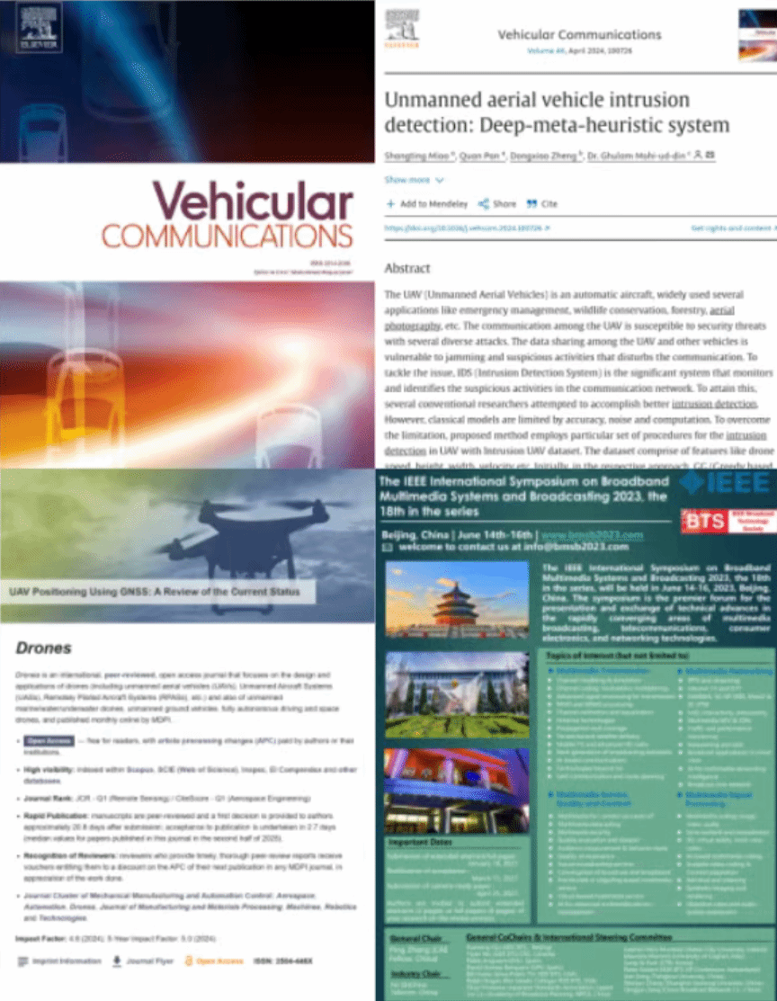[1]Unmanned Aerial Vehicle Intrusion Detection: Deep-Meta-Heuristic System[J]. Vehicular Communications, 2024. DOI:10.1016/j.vehcom.2024.100726. (第一作者,JCR:7.6/Q1)