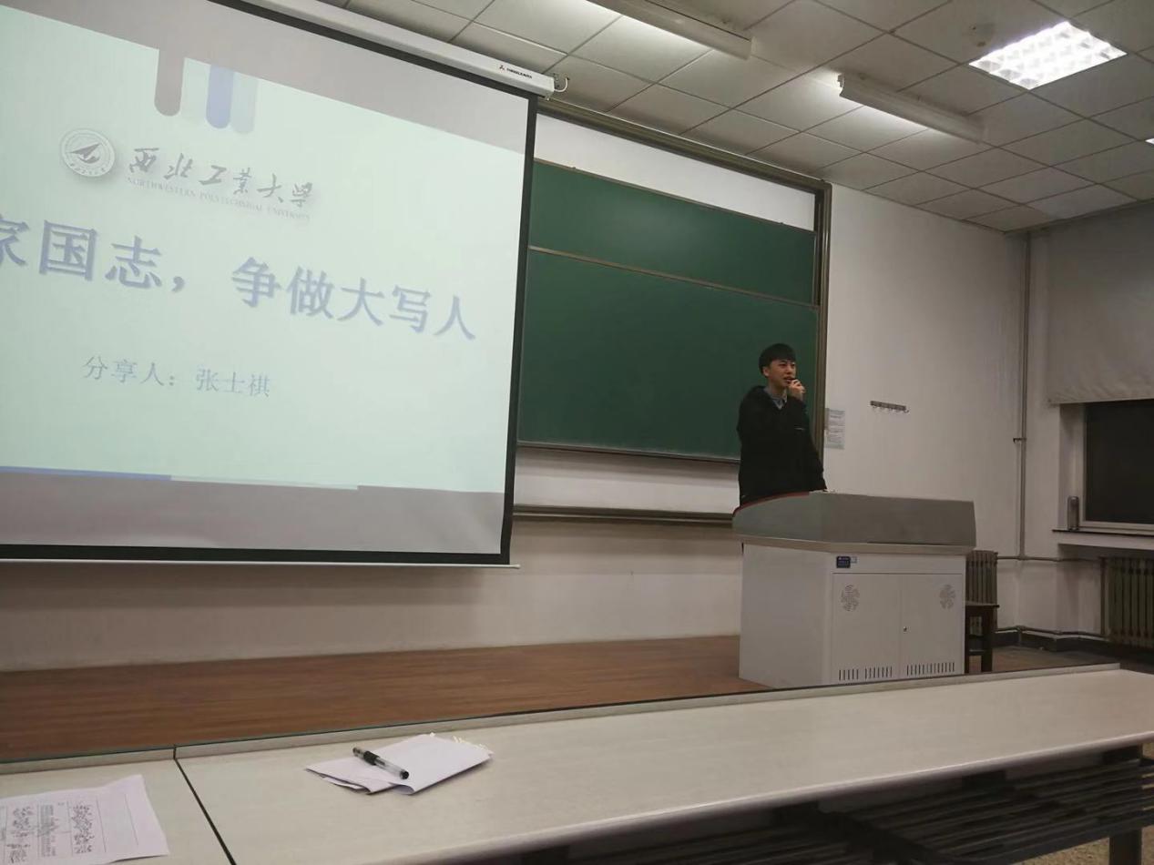 分享会最后,2016级本科生张士祺为大家分享了他在社会活动方面取得的成绩和思考。结合2016级入校典礼上汪劲松校长所讲到的“大学之大在于她是一个塑造“大写之人”的神圣殿堂,在这里,可以养成心怀天下的志向、革故鼎新的睿智和尊贤容众的胸怀”,张士祺同学鼓励大家在大学四年中努力争做全面发展的“大写之人”;结合自己国旗班工作经历以及前往国家机关实习的经历,张士祺同学建议大家在保证好学业的基础上不断开拓视野,发现自身优势,坚持不懈地追求适合自己的发展道路。
