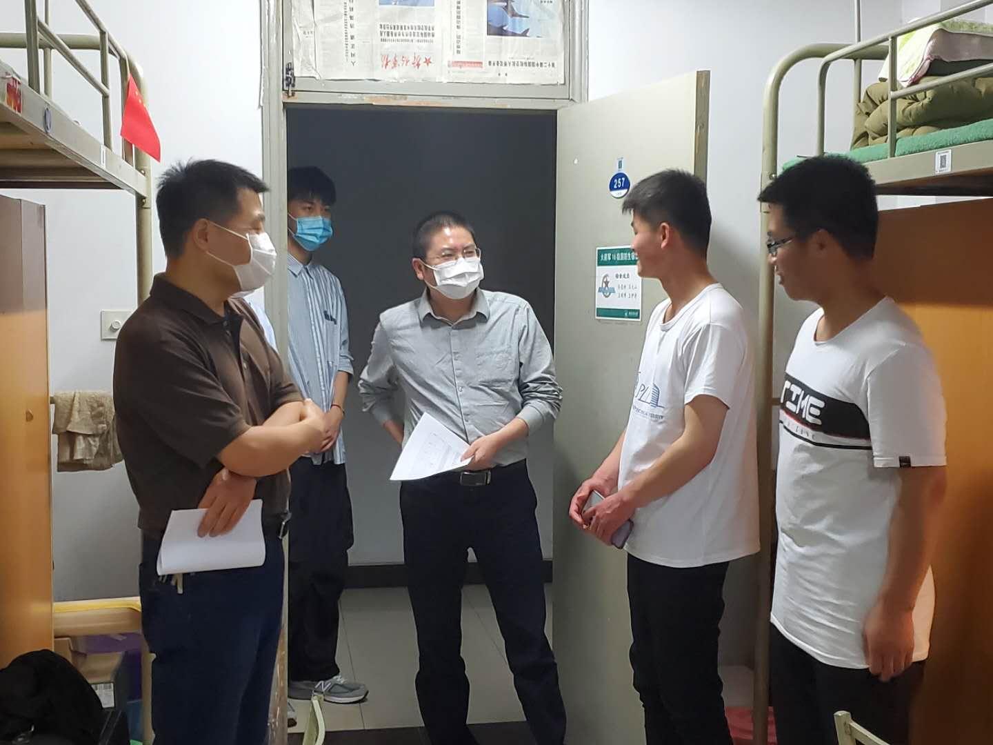 为切实做好疫情防控期间学院学生返校工作,确保返校学生困有所帮、难有所助,5月15日晚,77779193永利官网集团常务副院长张盛兵、党总支副书记(主持工作)王高祖、党总支副书记王宁军、院长助理王兆旭一行走访返校学生宿舍,看望慰问返校学生。
