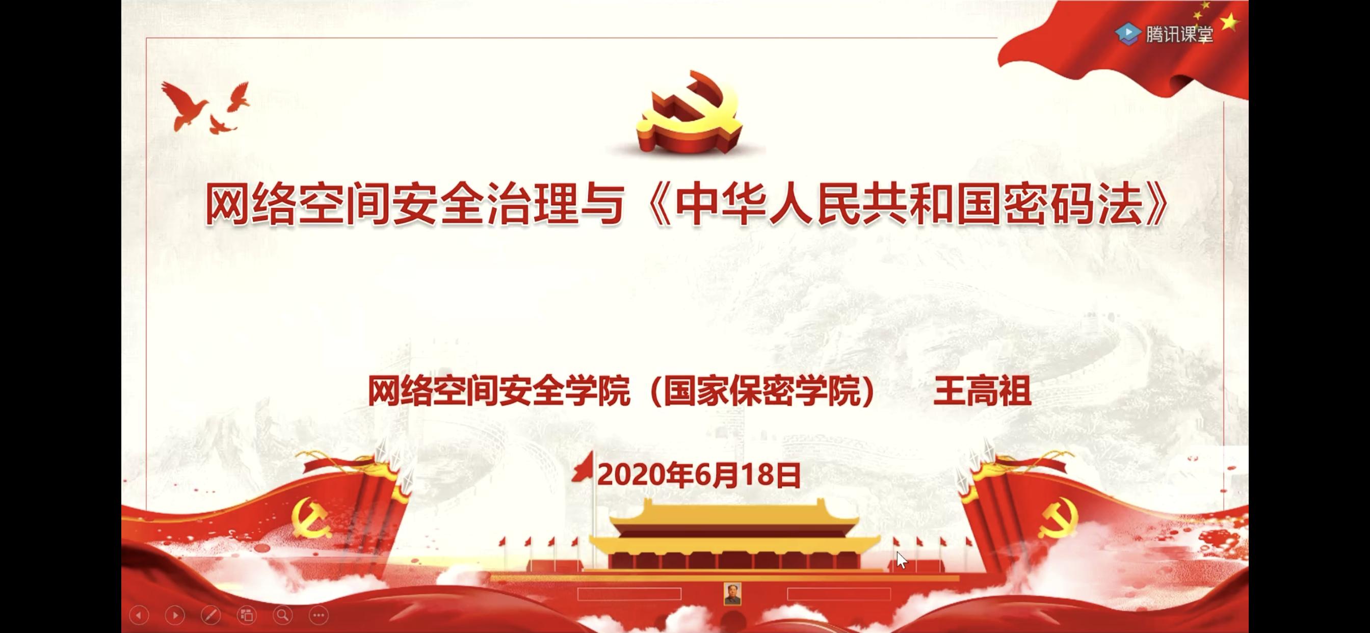 为加强密码法治宣传教育,增强学生的密码安全意识,6月18日下午,77779193永利官网集团组织开展《中华人民共和国密码法》线上宣讲活动,学院党总支副书记(主持工作)王高祖担任主讲,全院学生和部分2019级信息大类学生参加宣讲活动。本次活动也是我校2020年全民国家安全教育日密码法治宣传教育活动之一。