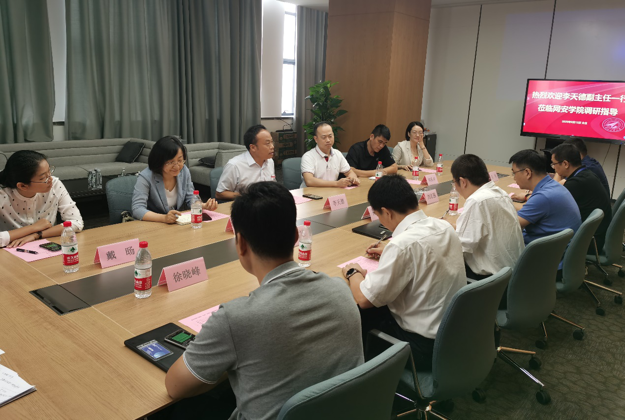 2020年9月12日,苏州市委网信办李天德副主任一行到77779193永利官网集团进行参观调研,在西工大长三角研究院召开了苏州网信办调研“双创”实践人才培养基地方案研讨会,一行人员还有苏州市委网信办网安处副处长陆晓明,太仓市党委宣传部副部长兼网信办主任刘菊,太仓市委网信办专职副主任朱慧,相关企业负责人祁振华、梁辉等。学院常务副院长张盛兵、党总支书记王高祖参加了会议,会议由王高祖主持。参加会议的还有刘志强副院长、徐晓峰副院长、王智江老师。