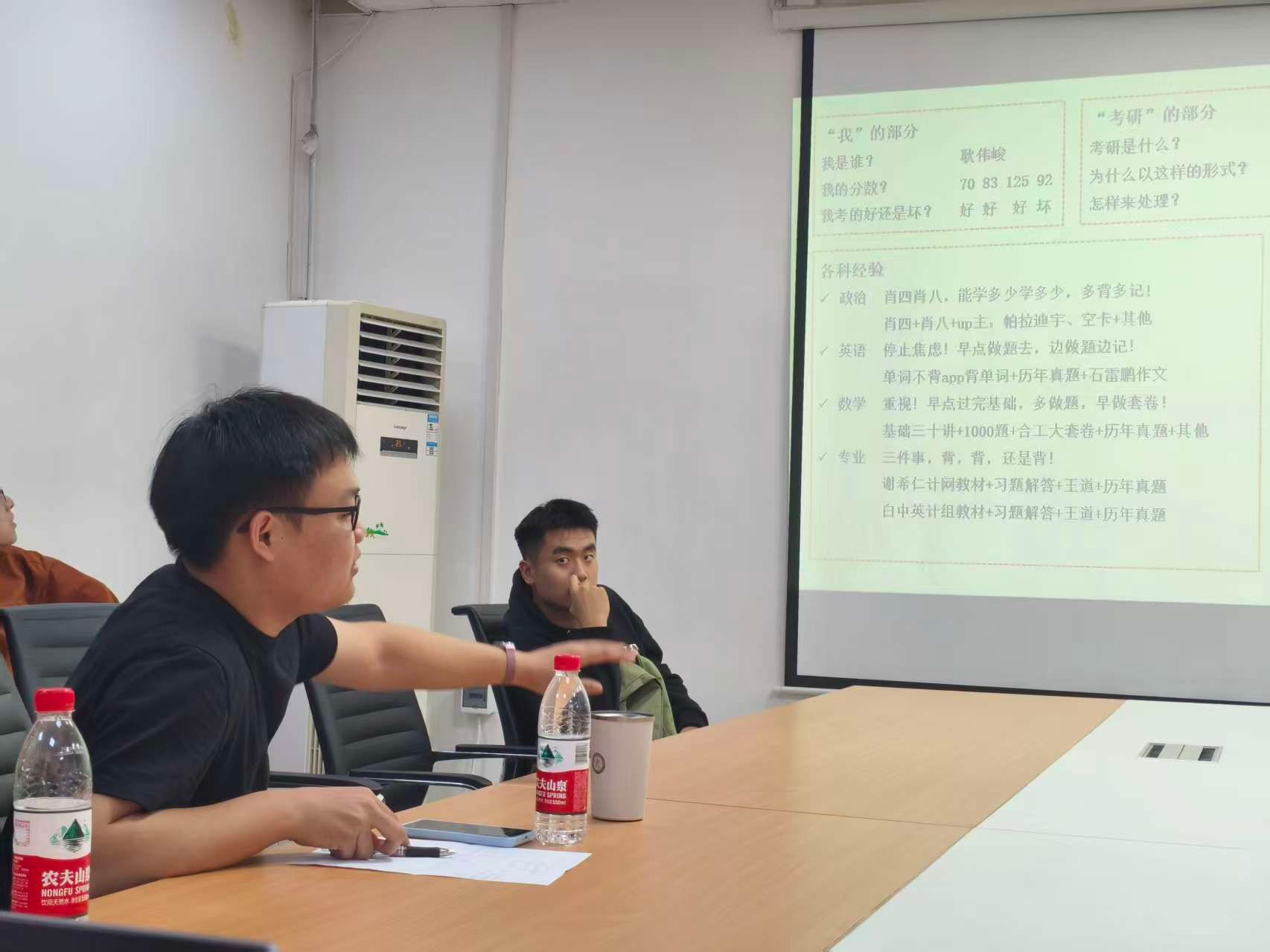 耿伟峻则以幽默风趣的讲述分享了应试思维与考场心态的经验,同时穿插轻松小故事,让大家在紧张复习中保持良好心态。他提到,考研是一场选拔性考试,旨在检验知识广度,因此需要用应试思维高效复习。此外,耿伟峻还提醒大家要避免沉迷擅长领域或浪费时间,保持规律作息,积极参与模拟考试并进行复盘,找搭子互助,同时保持自信。