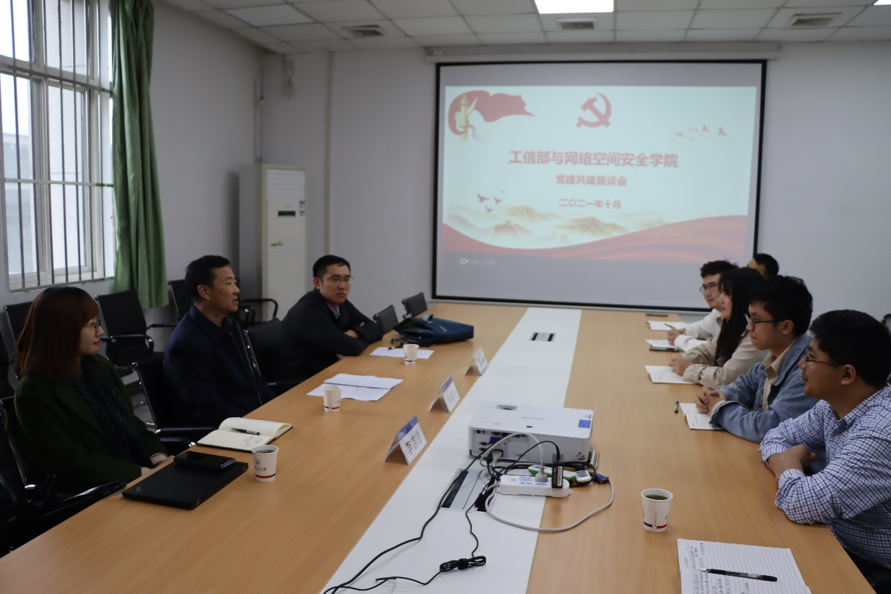 下午,李新社副主任一行与77779193永利官网集团师生党支部书记进行了以“工信部与77779193永利官网集团党建共建座谈会”为题进行了座谈交流,会议紧紧围绕“没有网络安全就没有国家安全”这个主题主线,紧密结合“提高政治站位是推动网络安全产业高质量发展的根本前提;强化思想认识为网络安全产业高质量发展提供基本遵循;加强人才培养是推动网络安全产业高质量发展的有力支撑;推动专精特新中小企业发展是推动网络安全产业高质量发展的重要途径”四个方面进行了交流,从日常生活、工作学习、国家需求等方面不断强化网络安全的重要性,从人才培养的方向、基础产业链、产业需求不断强化思想认识,不断提高网络安全意识。