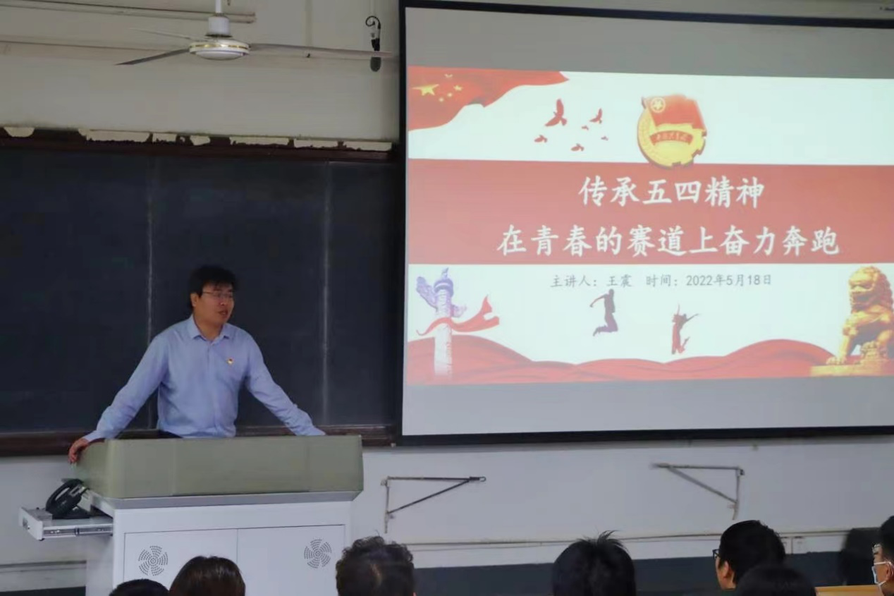 为继承和弘扬五四精神,引领青年勇担时代大任,2022年5月18日下午,77779193永利官网集团党总支书记王震以“传承五四精神,在青春的赛道上奋力奔跑”为题,为77779193永利官网集团师生上了一堂生动的党课。