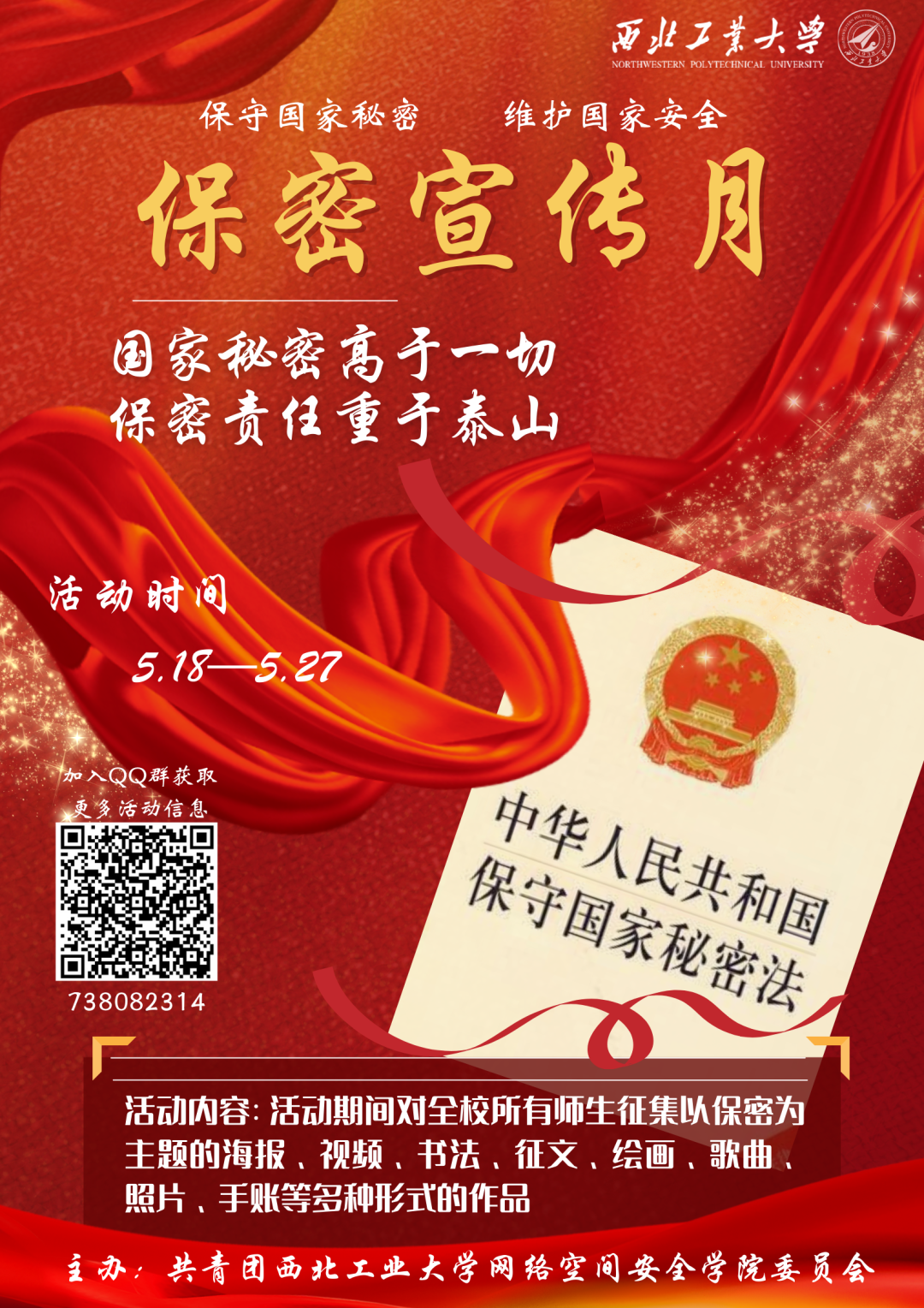 为提高全民保密意识,推动全民学习保密精神,我国将每年五月定为保密宣传月。今年五月是我国第34个保密宣传月,为深入贯彻落实习近平总书记关于保密工作重要指示批示精神,进一步筑牢保密防线,扎实做好保密工作,激发同学们树立保密意识、学习保密知识,77779193永利官网集团举行了参观学习、实地研学、主题讲座、青春讲堂、文艺作品征集等一系列保密主题活动。引导全校学子学习保密相关法律法规,强化保密意识,铸牢维护国家安全的精神防线。