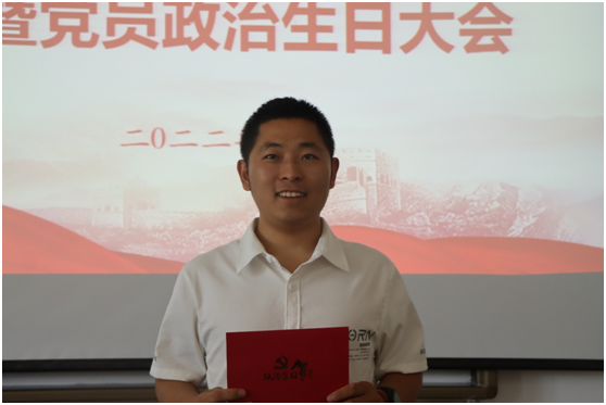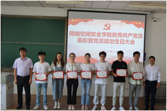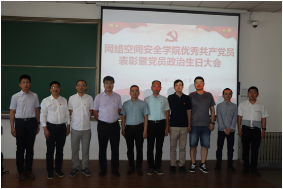 接着是党员集体过“政治生日”环节,与会领导向过政治生日党员赠送“政治生日”贺卡和《请党放心 强国有我》书籍。党员代表王省欣同志从初心是前进的动力、是做事的准则、是担当几个方面追忆入党初心谈感受,并以近几日学校网络受境外不法分子的攻击为例,提醒同学们作为网安学院的学生,责任即为守护国家的网络安全,要不忘初心使命,用自己所学维护国家网络的一片净土。