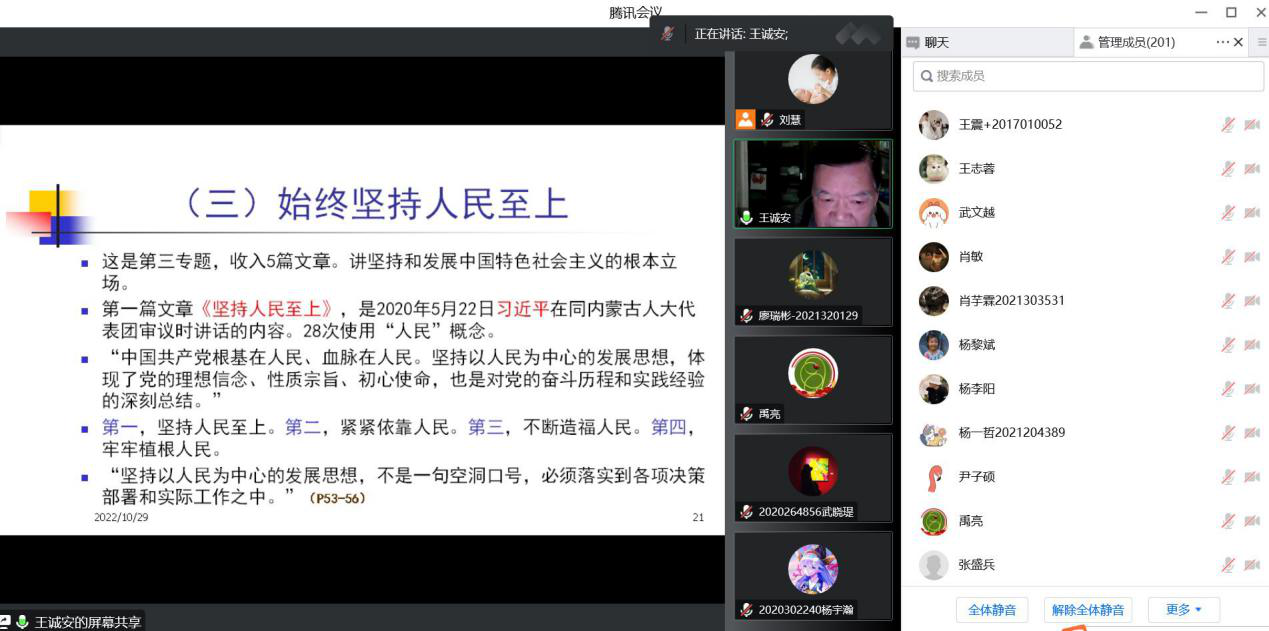 会议伊始,禹亮副书记介绍了王诚安教授的基本情况,并向王教授百忙之中抽出时间为学院师生授课表示感谢。王教授表示,在党的二十大结束之后,学院马上安排这次党课,展现了我院对于学习贯彻党的二十大精神的重视,是落实党的二十大精神的重要举措,也是铸魂育人的重要举措。