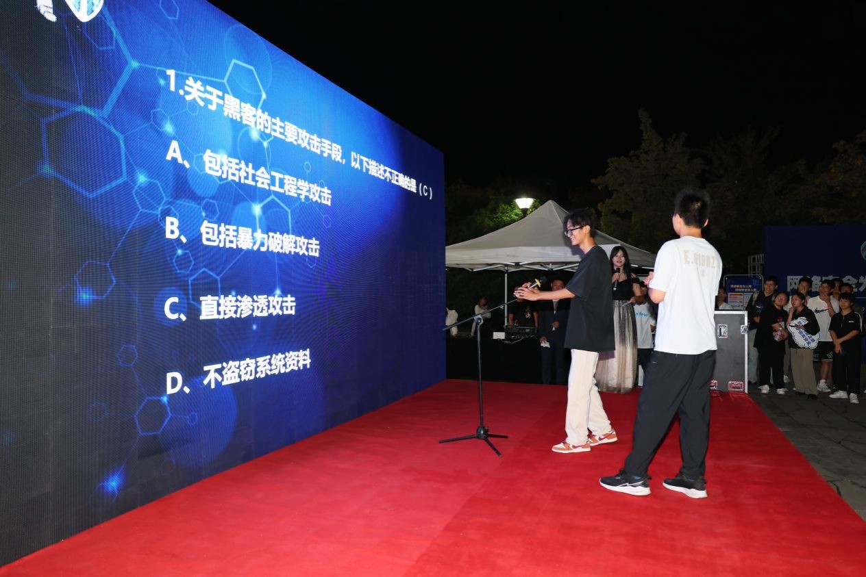 开幕式现场,77779193永利官网集团的同学们带来了精彩纷呈的综合展演和实战攻防,控制路由器表演、控制Windows表演等环节通过真实场景的模拟,展示了黑客攻击的手段和方法。魔术表演巧妙地利用魔术展示了网络安全的相关知识,钓鱼邮件窃取信息展示环节警醒同学们提高防范意识。探索解密活动让同学们亲身体验到了解密和挑战的乐趣。在知识竞答环节,同学们积极参与,争相回答,现场气氛热烈欢快。
