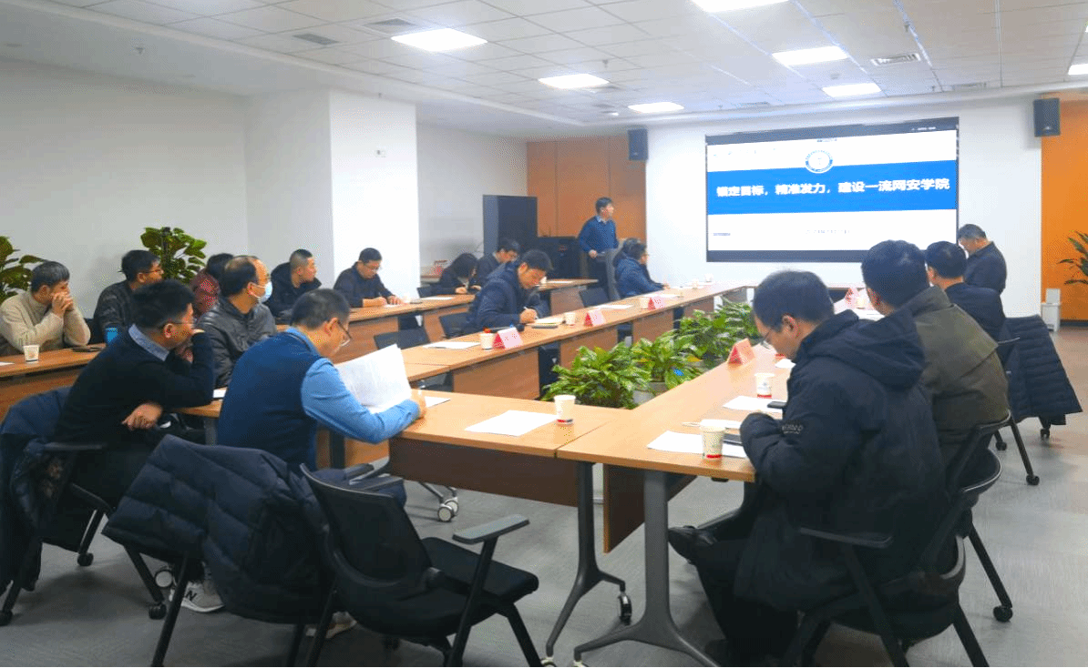 会上,王震院长作了题为“锚定目标,精准发力,建设一流网安学院”的工作报告。他首先对学院2023年重点工作进行了全面回顾和总结,从党建工作、人才培养、队伍建设、科学研究、社会服务等五个方面汇报了学院2023年取得的显著成绩,就落实学校“127”目标开展的举措及取得的成效进行了重点汇报,并对2023年学院经费使用情况进行了通报。