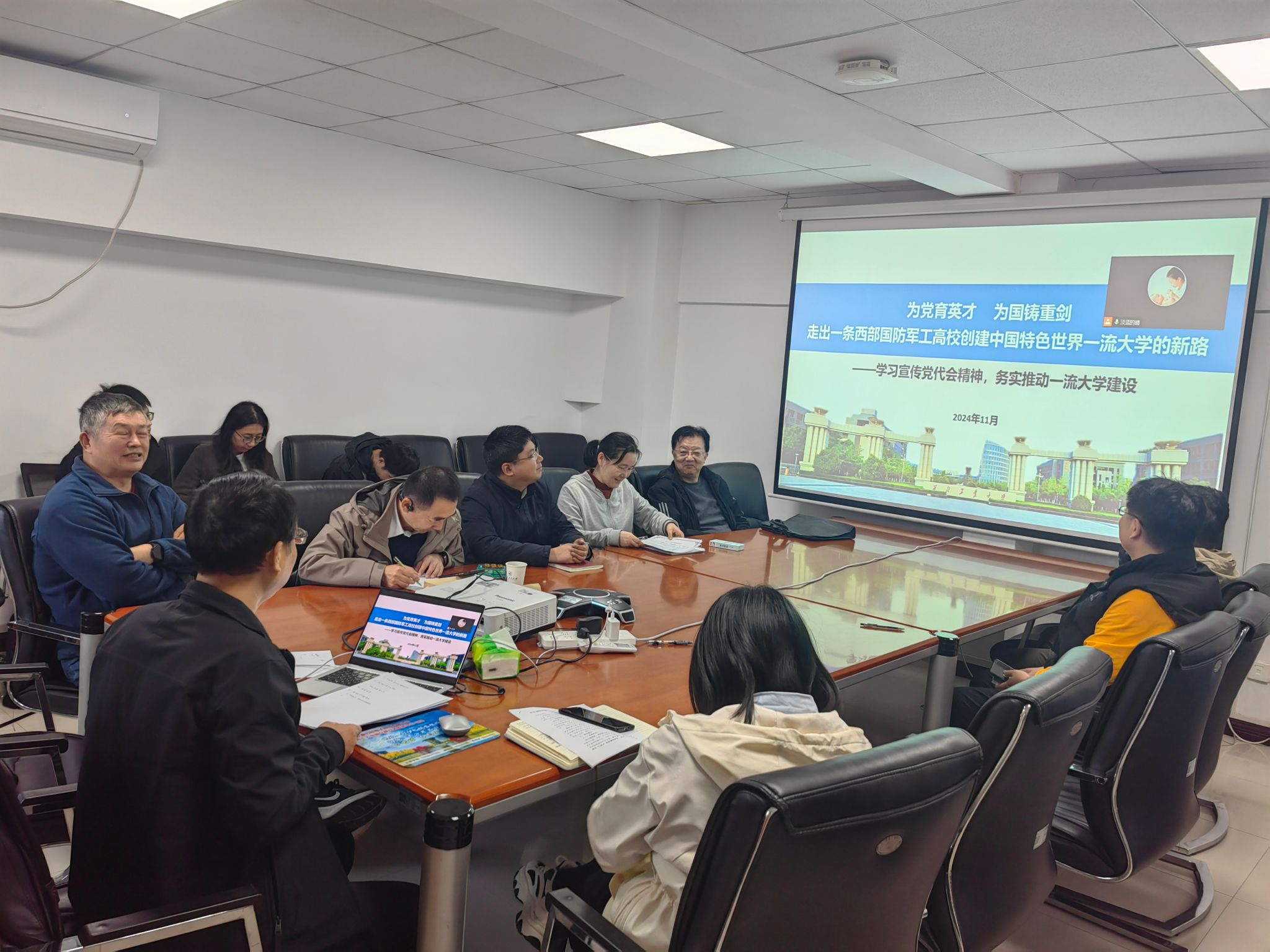 会上,党委书记张文涛首先对校第十四次党代会召开的背景、时间、重大意义和大会盛况进行了全面介绍,重点解读了大会的主题、确立的“新三步走”发展目标以及“天下工大、世界三航”远景目标的内涵和意义,并结合党代会确定的全校下一阶段发展的重要举措分析了学院的发展和工作实际,强调了学院发展的核心关键指标、存在的差距和下一步努力的方向。