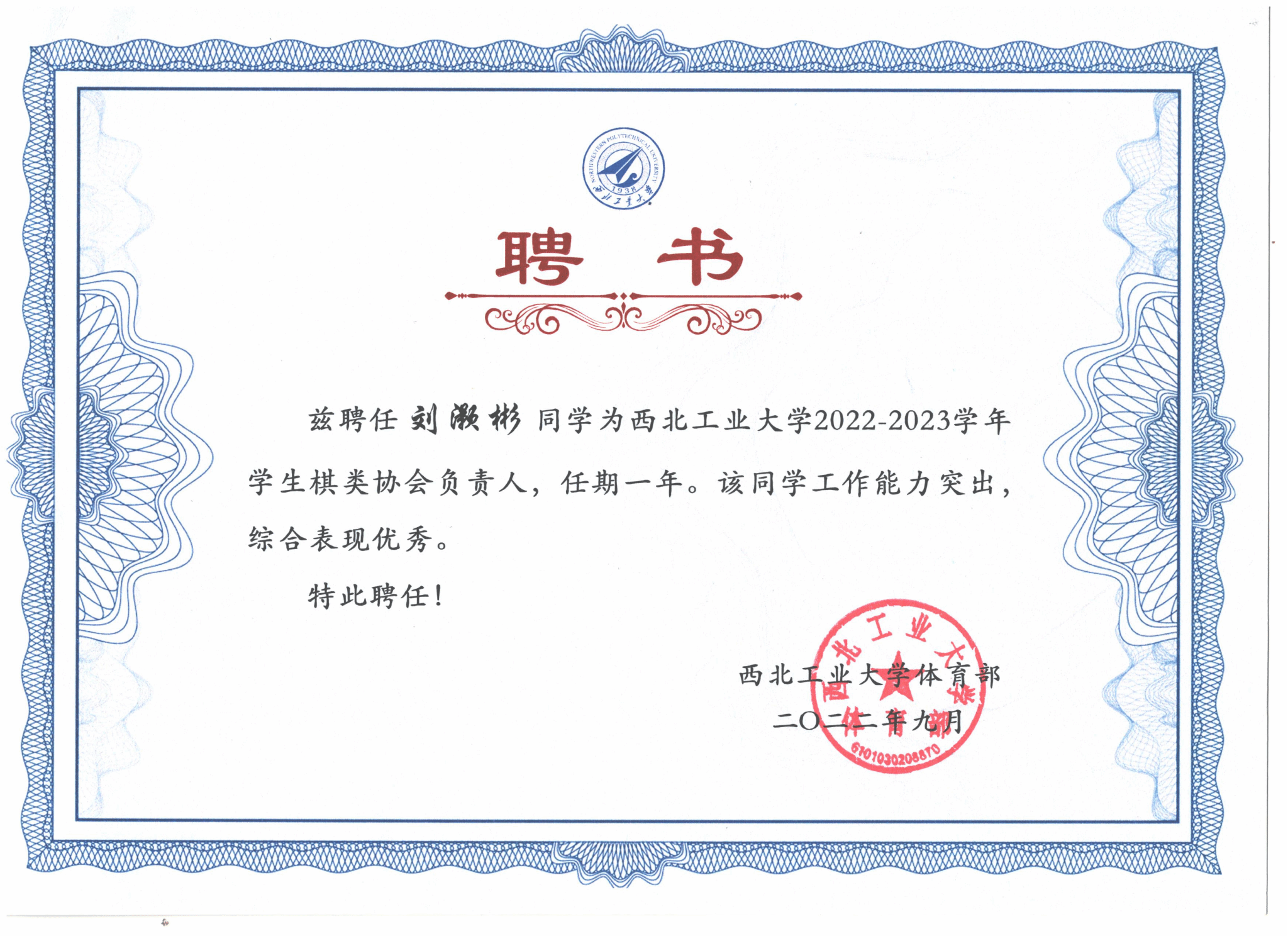 除学习之外还参与乒乓球、棋类、拔河等多项体育项目,获第二届全国大学生象棋锦标赛二等奖、陕西省大学生棋类交流赛三等奖等。积极参与社会实践,参与2023暑期广州社会实践,参与疫情防控、“灿烂千阳”线上支教、“安守四方”反诈公开课等实践活动累计志愿时长超200小时。