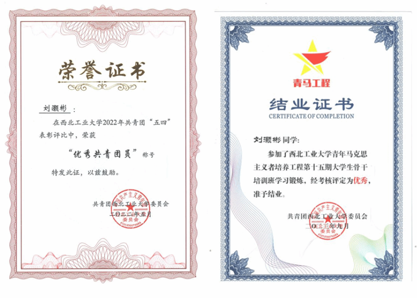 理想信念坚定,积极向党组织靠拢。自大一入学提交入党申请书以来,不断接受党的教育,于2024年成为了一名光荣的共产党员。积极参与思政教育活动与社会实践,参与如五四青年说、我学我讲二十大等思政活动,并前往革命圣地延安参观学习。在第十五期“青年马克思主义者培养工程”大学生骨干培训班中评为“优秀学员”。在2022、2023、2024年五四表彰中连续三年被评为“优秀共青团员”。