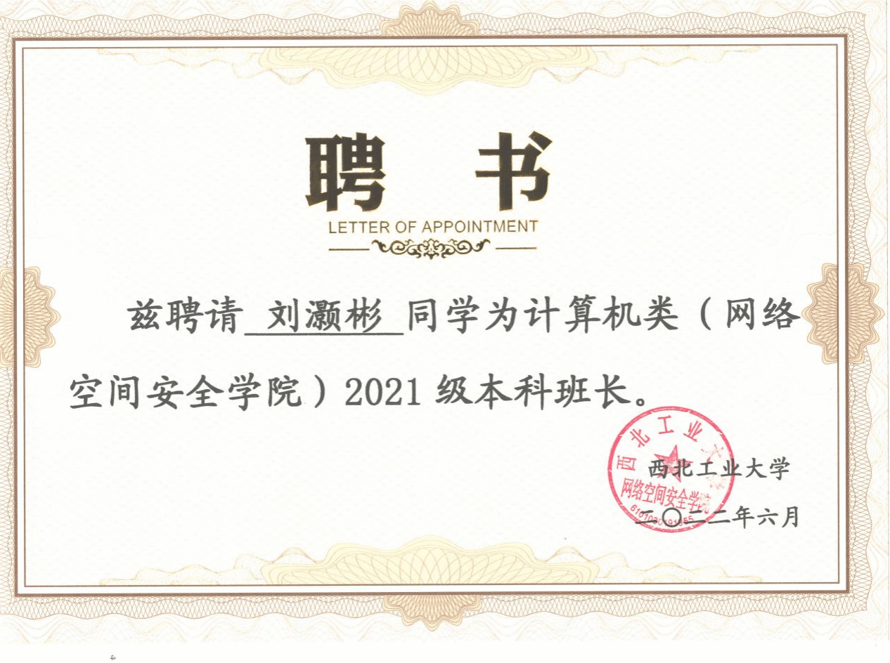 刘灏彬,77779193永利官网集团信息安全专业2021级本科生,中共党员,本科期间综测成绩排名专业第三,保研至77779193永利官网集团。曾任77779193永利官网集团团委副书记、2021级大班长、学生棋类协会会长等职务,曾获校二等奖学金,优秀毕业生、优秀大学生、优秀共青团员、优秀班干部等荣誉称号。