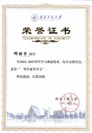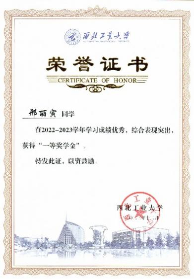 2023年校设一等奖学金