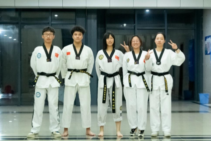 崔智尧(右二)和跆拳道队友们的合影