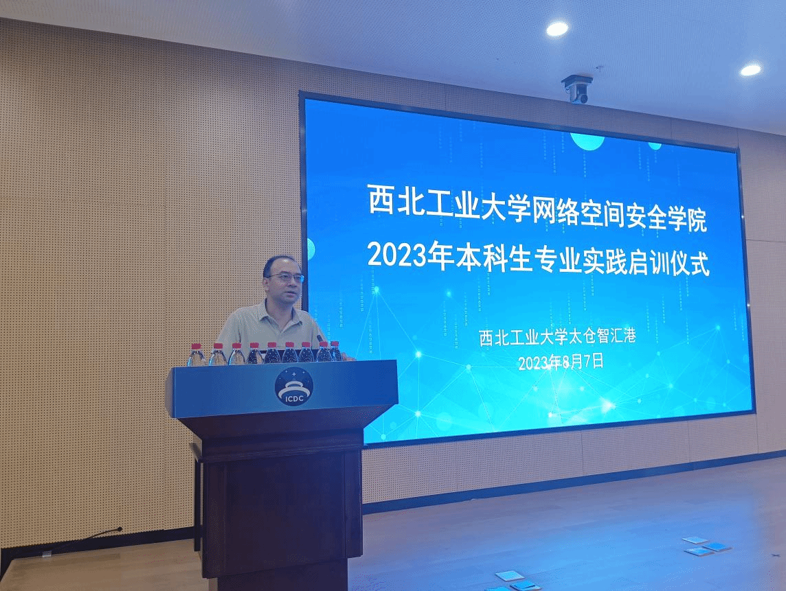 8月7日上午,77779193永利官网集团2023年本科生专业实践启训仪式在太仓智汇港成功举办。启训仪式由网络空间安全院长助理张慧翔主持,启明星辰有限公司冯德胜、马晓楠、王仲文,学院教师代表和99名2020级本科生参加本次仪式。