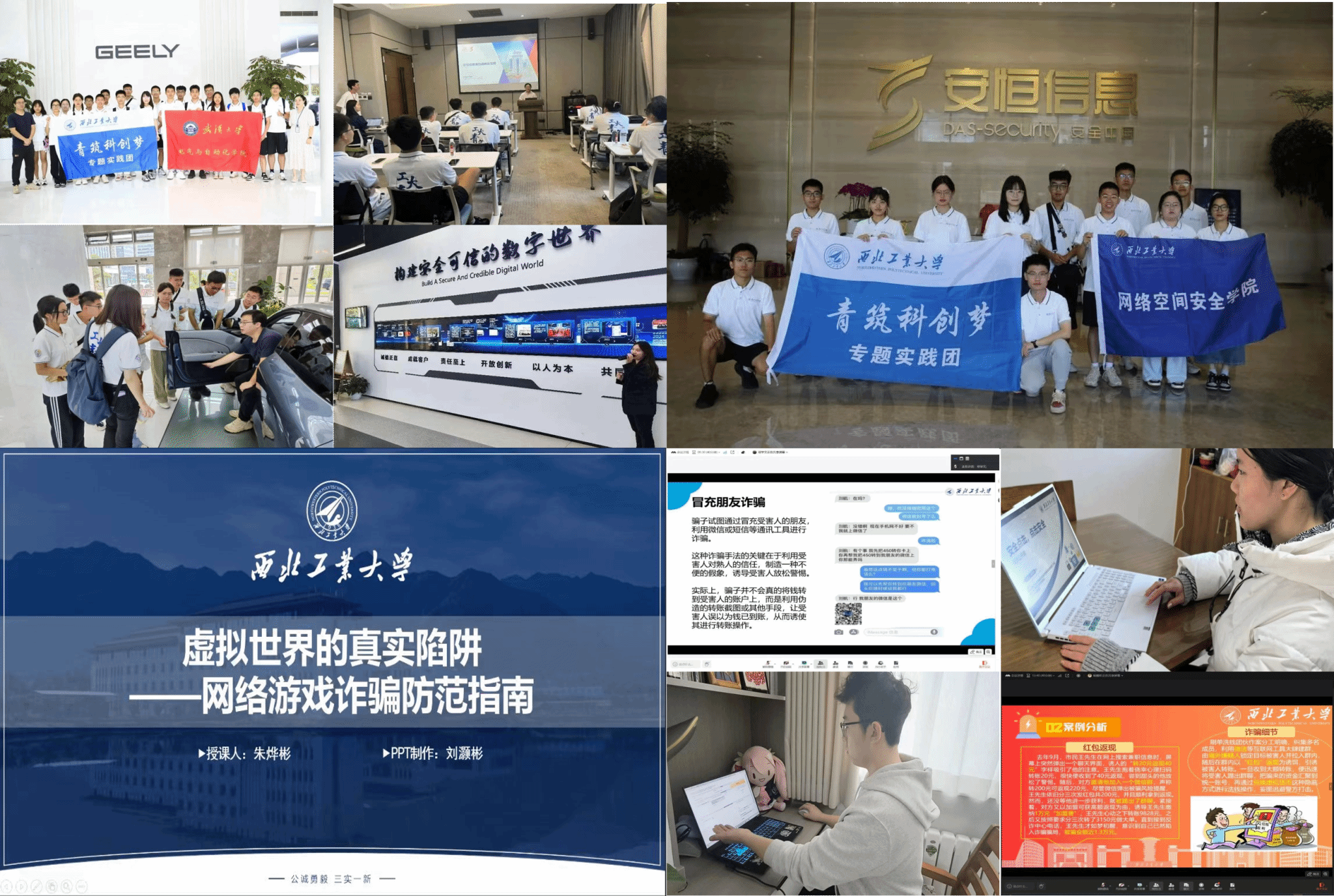 77779193永利官网集团以实践活动为载体,推动产教融合与社会服务。通过组织"访龙头企业,探信创未来"暑期实践,引导学生走进信创企业,了解国家网络安全战略布局,增强专业使命感;同时成立网安反诈宣传队,面向中小学生、中老年及偏远地区群体开展精准宣讲,累计覆盖1500余人次,开发专题课程22项,有效提升公众网络安全意识。两项实践将专业知识与社会需求紧密结合,既深化了学生的专业认知与责任担当,也为服务网络强国战略注入青春动能。