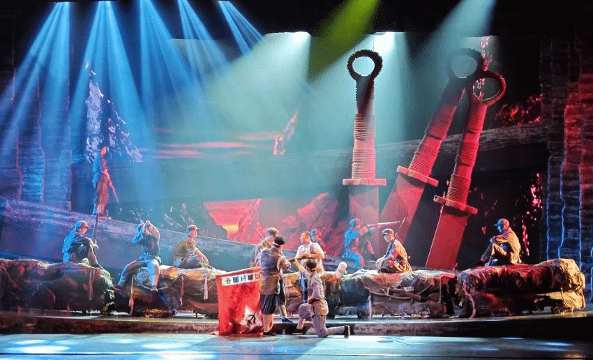 当晚,大型红色主题秀《延安·延安》以震撼的舞台艺术再现了革命战争年代白雁明、欧阳坚、拴柱三位热血青年的奋斗画卷。光影流转间,实践队员们与往昔的青春热血进行跨越时空的精神对话,在跌宕剧情中上了一堂直击心灵的大思政课。