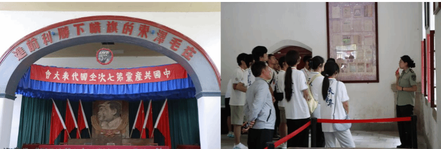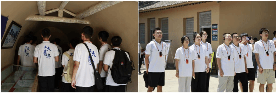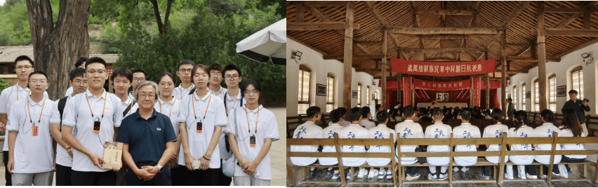 下午,实践队踏访杨家岭革命旧址。在黄土坡的窑洞院落里,睡木板床、盘土炕的细节讲述着先辈在艰苦环境中的乐观与坚韧。走进中共七大的中央大礼堂,穹顶的红旗与标语中蕴含着激荡的历史风云。