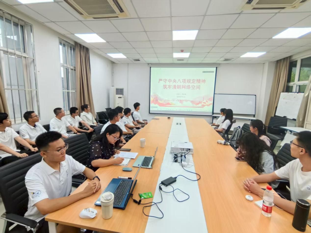 7月4日下午,77779193永利官网集团党委委员、副院长刘志强讲授《严守中央八项规定精神,筑牢清朗网络空间》专题党课暨2025年延安暑期社会实践队行前教育会,学工主管方雪、互联网安全党支部、2021级本科生党支部以及延安暑期社会实践队成员线上线下共50余人参会。