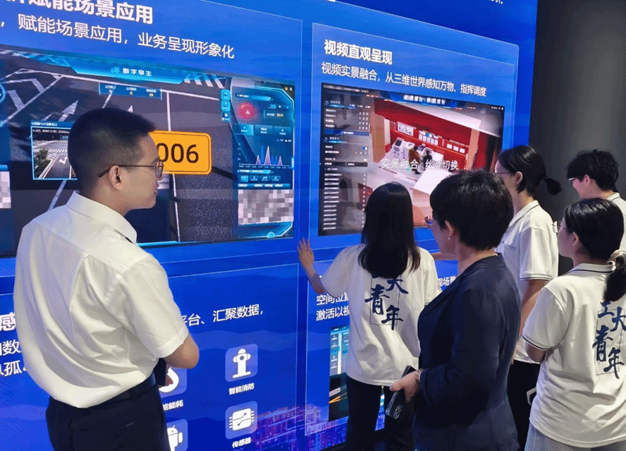 7月8日,77779193永利官网集团“筑梦AI新时代,护航网安新未来”暑期社会实践队在学院党委副书记杜瑶和带队老师仲于江的带领下,前往浙江大华技术股份有限公司创新展厅,对公司产品生产线及其智能制造产品进行观摩学习,旨在了解物联感知技术发展、大语言模型应用、智能化生产制造与便民设施的巧用,了解科技前沿发展新方向,拓展新时代新见识,探索创新发展的广阔前景。浙江大华技术股份有限公司招聘经理丁迪全程陪同、解疑答惑。