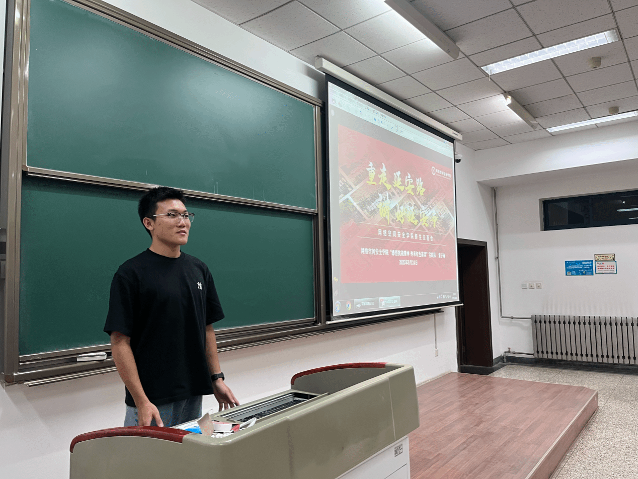 张文涛详细讲解网安学科发展历程、学院与学科建设概况,重点解析学院以“总师育人文化”为引领的特色网安人才培养体系,并介绍雄厚师资队伍以及前沿科研方向。并鼓励新生坚定信念,与学院共成长。