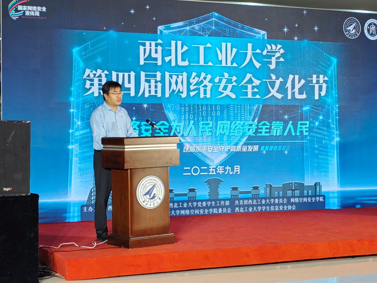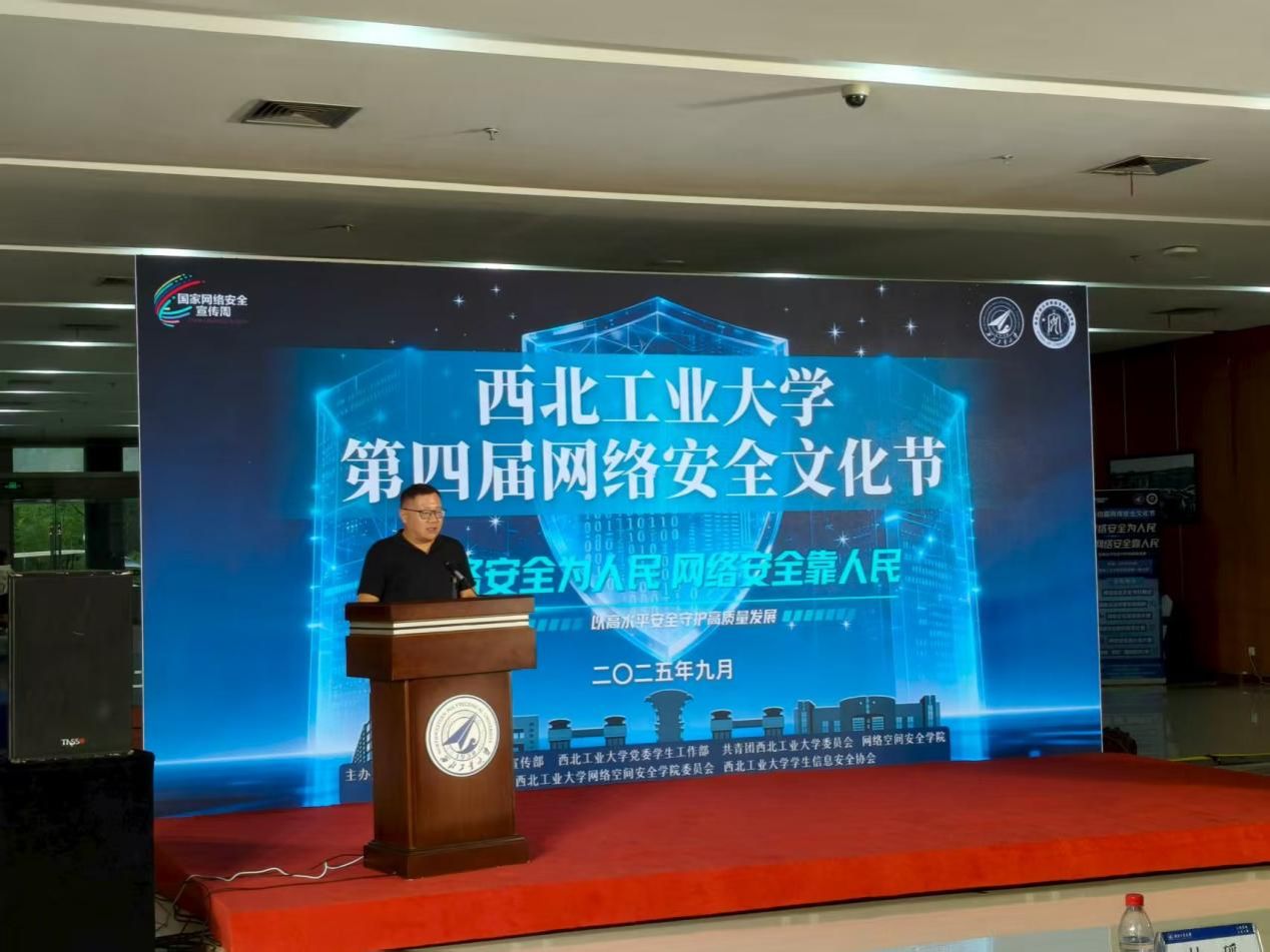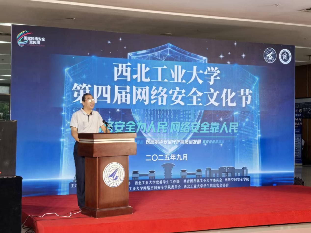 陈仲昌代表学校致辞。他强调,网络安全是国家安全的重要组成部分,事关国家战略全局。他介绍了学校在网络安全学科建设、科研创新与人才培养方面取得的多项成果,勉励师生积极投身网络安全事业,为维护国家网络空间安全不断贡献西工大力量。