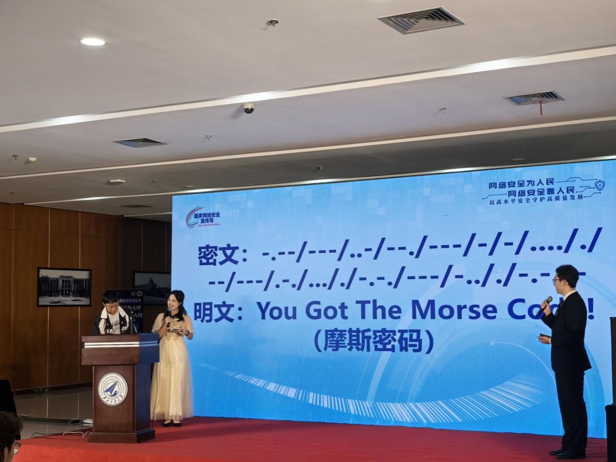 紧随其后的趣味密码解密互动环节,再次将活动现场氛围推向高潮,同学们上台破解了一个个趣味密码,亲身体验了解密和挑战的乐趣。