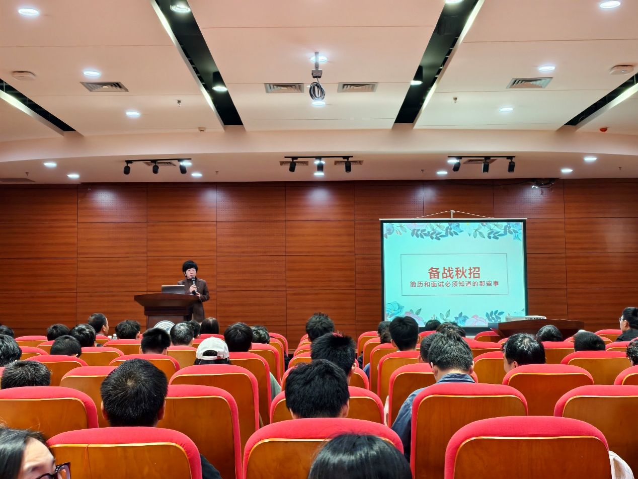 在随后的分享环节,王莉结合自身多年招聘经验,围绕“就业分享”、“简历制作”与“面试技巧”三大核心模块,为同学们带来了干货满满的分享。