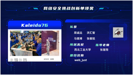 第十五届全国大学生信息安全竞赛—创新实践能力赛由南开大学承办。全国495所高校的2219支队伍,共7178人注册报名参赛,参赛的战队、人员数量创历届之最。经过线上初赛和分区赛层层选拔,最后遴选出82支优秀队伍入围全国总决赛(每个高校至多两支队伍晋级),我校2支队伍均进入总决赛。总决赛于8月23日至24日在线举行,经激烈角逐,张慧翔老师指导,周诚远、洪汇智、马镜博、张傲锐组成的Kaleido76战队,获得全国二等奖,并获网络安全挑战创新单项奖;邰瑜老师指导,李浩宇、梁高玮、崔智尧、祖锦源组成的JK战队,获得全国三等奖。