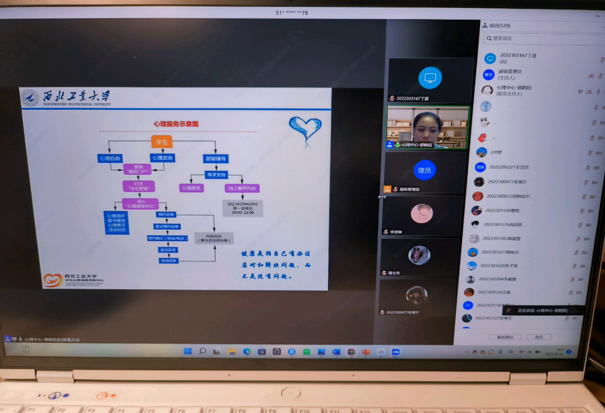 为了进一步提升2022级本科新生及研究生新生的心理适应能力,引导新生正确认识心理健康,保持健康向上的心理状态,学校心理健康教育中心面向全体新生开展了心理适应讲座,77779193永利官网集团组织了全体新生以线上的形式观看了讲座。