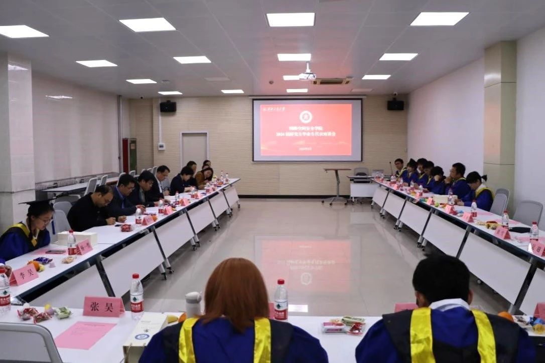 认真听取毕业生代表发言后,与会领导和老师对同学们提出的问题进行了一一回应,并表示学院将认真梳理大家提出的建议,在空间资源拓展、交流研讨配套、信息化建设、管理效能和服务保障能力提升等方面认真研究落实。并表示,学院将持续改进工作,为学生提供更好的成长资源和环境,希望毕业生们能够带着母校的祝福与希望,勇毅前行,在未来的道路上取得更大的成就。学院永远是大家的温暖的港湾,希望大家保持与学院的联系,继续支持和见证学院的发展,欢迎大家常回家看看。