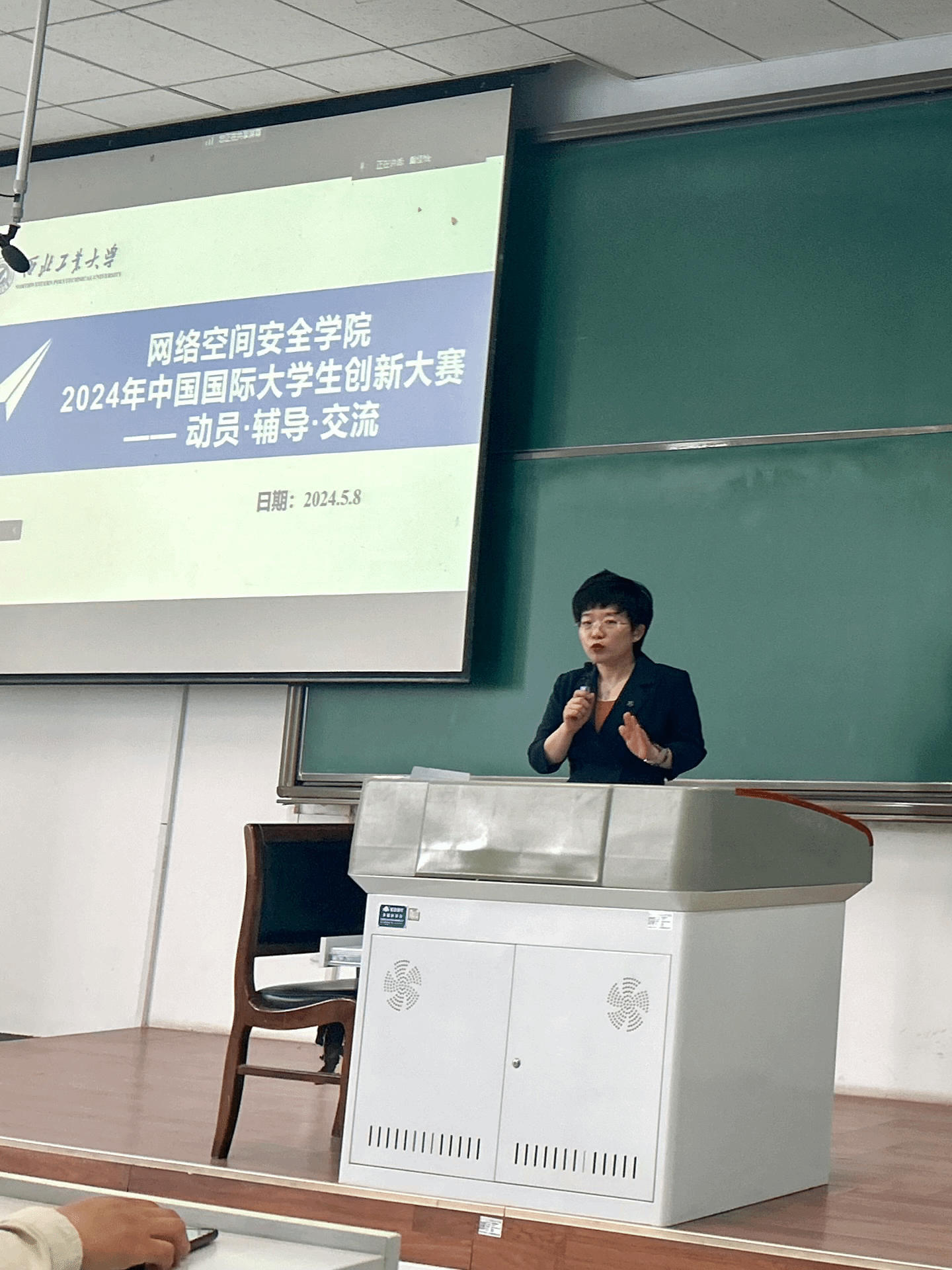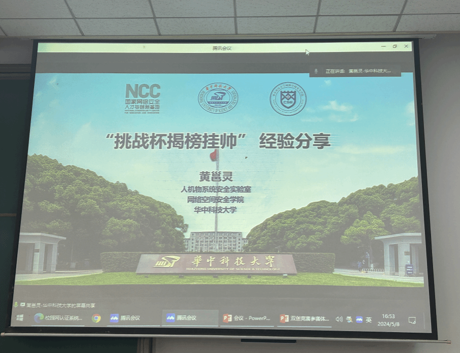 活动第三个环节,由一流网安兄弟院校的优秀竞赛选手黄邕灵和王云川与大家进行线上交流。黄邕灵是2023年“揭榜挂帅”专项赛擂主团队的负责人,她为现场同学对于揭榜挂帅的赛事进行了全面的介绍,黄邕灵讲解了揭榜挂帅赛事的流程和“擂台赛”的现场流程,她指出“揭榜挂帅”专项赛和创新大赛的区别在于后者更注重产品的商业价值,揭榜挂帅更注重技术突破和指标。王云川是2021年“互联网+”国赛银奖负责人,也是2023“挑战杯”国赛特等奖团队负责人,他现场展示了去年的特等奖案例,并结合自身分享实战经验,他提出产品的展示要配着亮点突出的背景意义,每一页ppt都应当有导入与结论。同时两位同学还与线下的师生互动交流了“如何克服畏难情绪”和不同学校的参赛鼓励政策等内容。