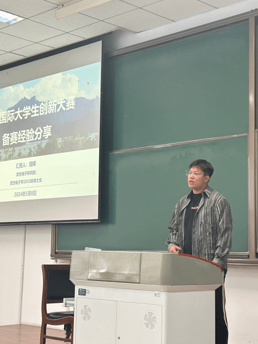 宋剑作为2023年挑战杯国赛金奖团队负责人和创新大赛金奖团队的核心成员,他分享了从学术前沿课程启蒙到第一次科研训练再到优秀创新成果的历程,他指出ppt是展示创新成果的重要载体,在展示环节要突出关键的时间节点和数据节点,他结合团队项目,向大家说明如何清晰地论证产品社会价值、先进性、商业推广能力,提出创新成果的展示一定要结合行业背景和市场分析,要凸显核心技术和产品服务。众多干货的分享让同学们受益匪浅。