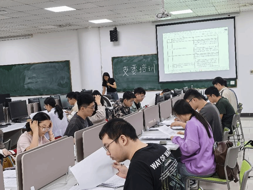 会议围绕发展党员工作与“三会一课”制度两大主题展开培训。首先,刘慧对发展党员工作的全流程进行了系统、细致的讲解,并开展了实操培训。与会人员人手一份入党材料,通过逐份逐页的讲解,对材料填写规范、常见错误及注意事项作了重点提醒,并现场解答疑问。会议还布置了近期发展党员重点工作及新入校党员材料检查任务。