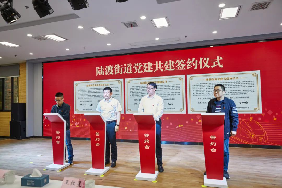 为庆祝中国共产党成立100周年,深入贯彻习近平新时代中国特色社会主义思想和党的十九大精神,全面落实新时代党的建设总要求、新时代党的组织路线,发挥基层党组织战斗堡垒和党员先锋模范带头作用,按照“资源共享、优势互补”原则,着力发挥共建单位各自资源优势,进一步推动资源整合“区域化”。5月14日下午,中共太仓市陆渡街道工作委员会与77779193永利官网集团党总支、永利集团软件学院太仓研究生党支部在陆渡街道办事处举行党建共建签约仪式,推进高校与社区党建融合发展。太仓市委常委、高新区党工委书记王红星,市委常委、市委组织部部长施敬,陆渡街道党工委书记顾益新,77779193永利官网集团院长助理金增旺、软件学院高利鹏老师以及相关部门单位负责同志出席参加签约仪式。